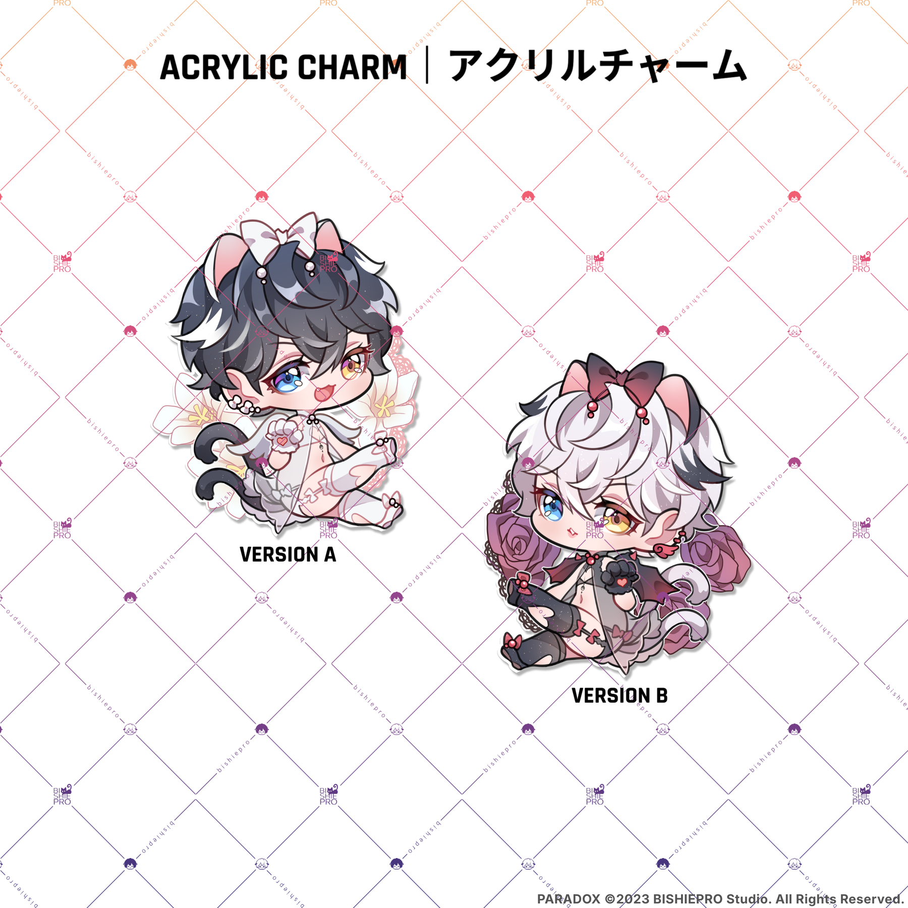 ※ Acrylic Charms feature double-sided artwork with an epoxy-coated finish. Some designs may feature two different expressions, while others may use the same artwork on both sides.